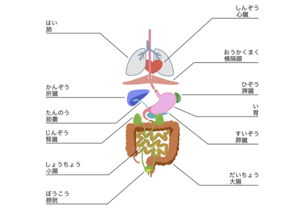 六臓(心臓・肺・肝臓・腎臓・脾臓・膵臓)と五腑(胃・小腸・大腸・膀胱・胆嚢)